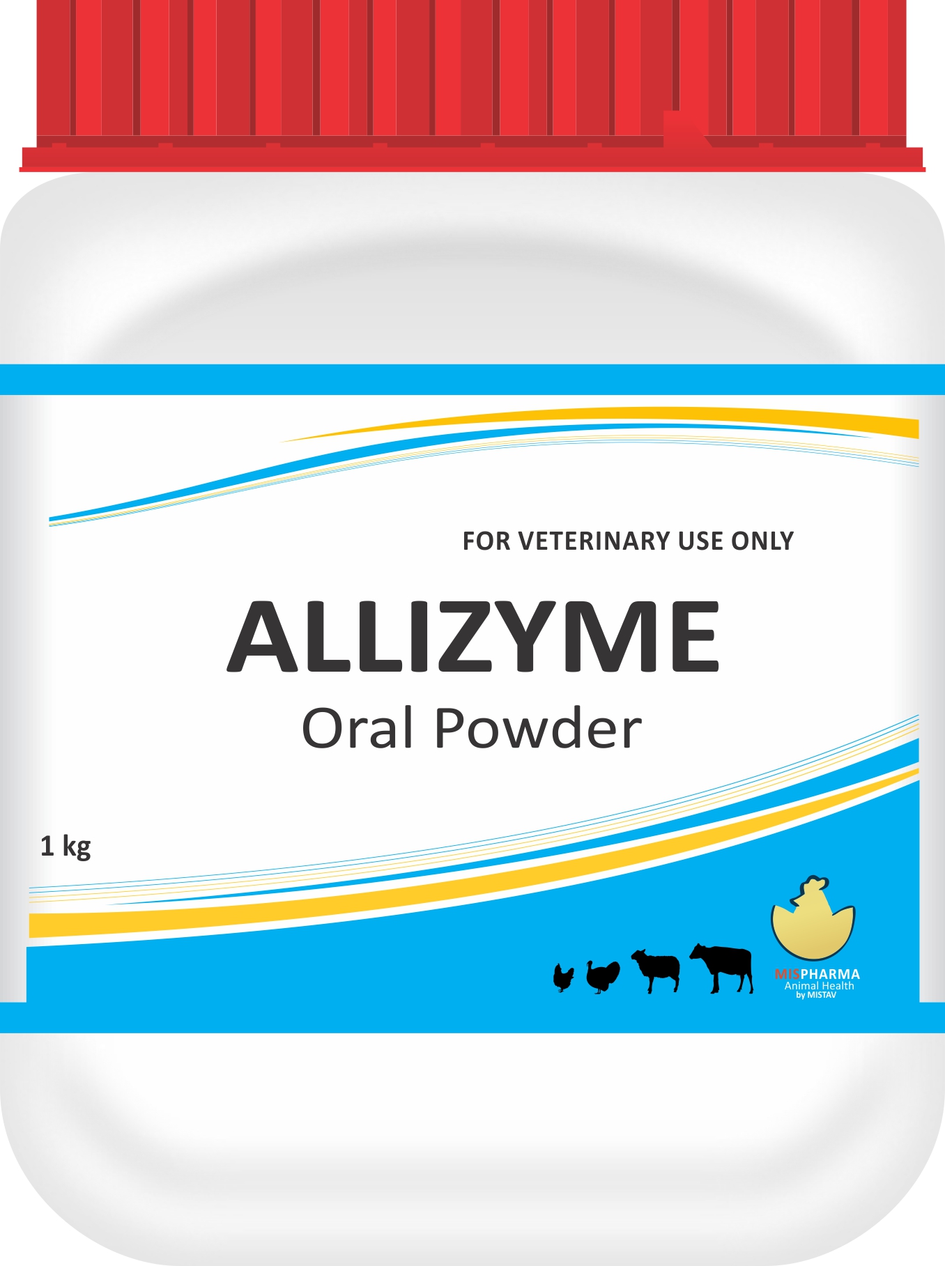 Allizyme powder is a feed additive used for supplying the vitamin E, Vitamin C, mineral (Selenium), and enzyme (Lysozyme) deficiencies to correct concurrent clinical or subclinical deficiencies of poultry, cattle, sheep, and goats.